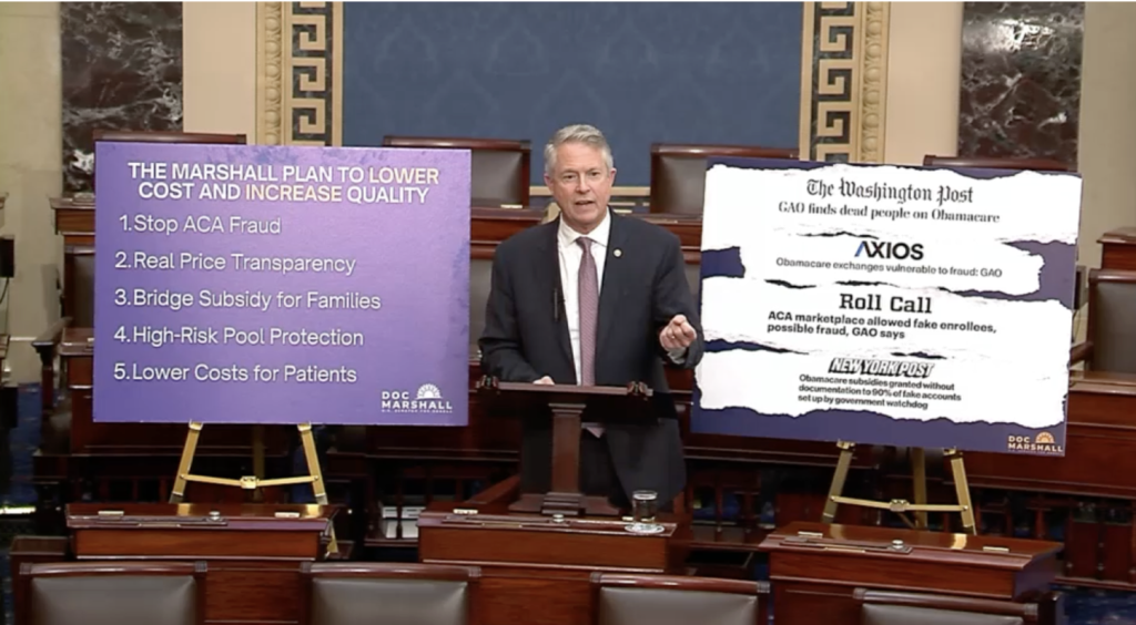 Senator Marshall: Democrats Walked Away From a One-Year Subsidy Extension & Real Solutions to Fix our Healthcare Crisis