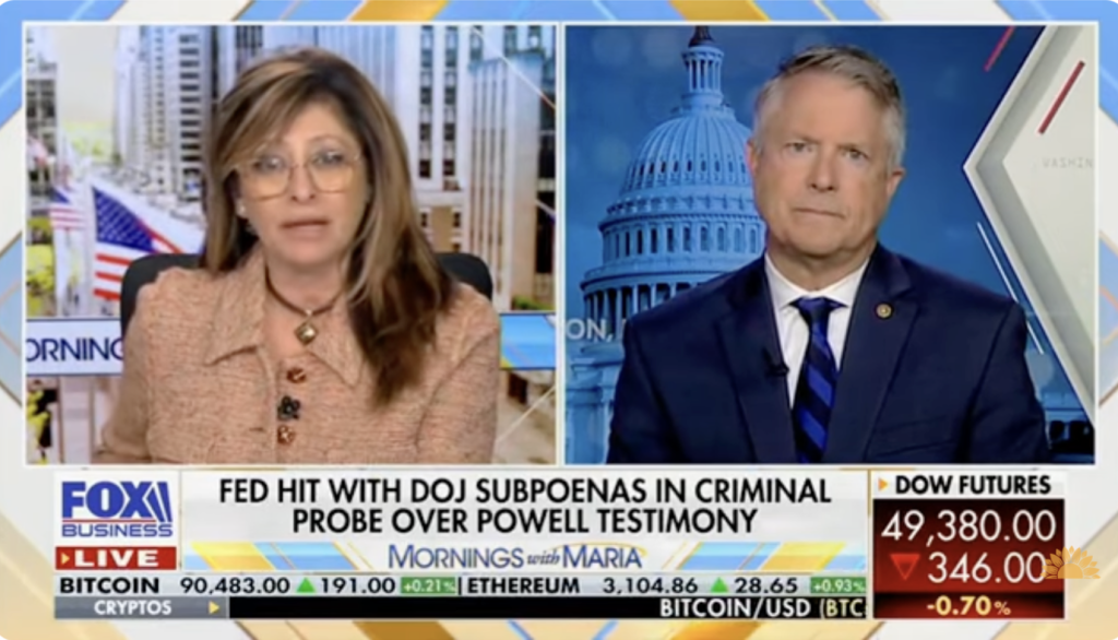 “Well, Maria, Jerome, “too late” Powell, he’s the one that’s made this political. You go back to the last presidential election, right before the election, he drops the interest rates. Did we even need a new federal building? It was budgeted under 2 billion. It’s two and a half billion dollars. I think this President is sending a message to everybody that we’re going to be looking out for fraud, waste, and abuse. Meantime, we have a housing crisis out here, and interest rates remain too high, and people can’t achieve that American dream of owning their own house?”