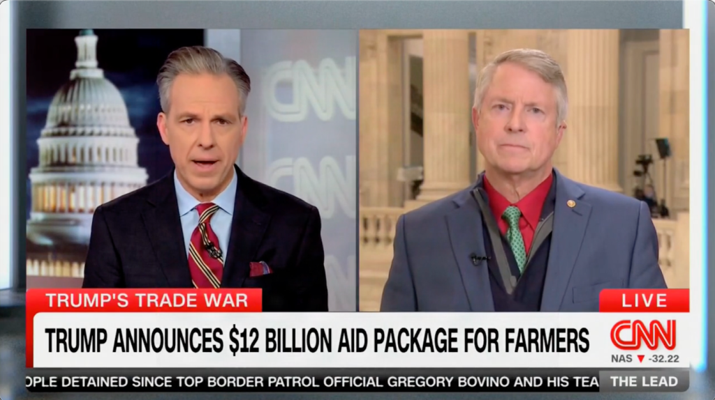 Washington – On Monday, U.S. Senator Roger Marshall, M.D. (R-Kansas), joined Jake Tapper on CNN’s The Lead with Jake Tapper to discuss President Trump’s $12 billion aid package to American farmers and his plan to make health care affordable again through transparency and patient empowerment.