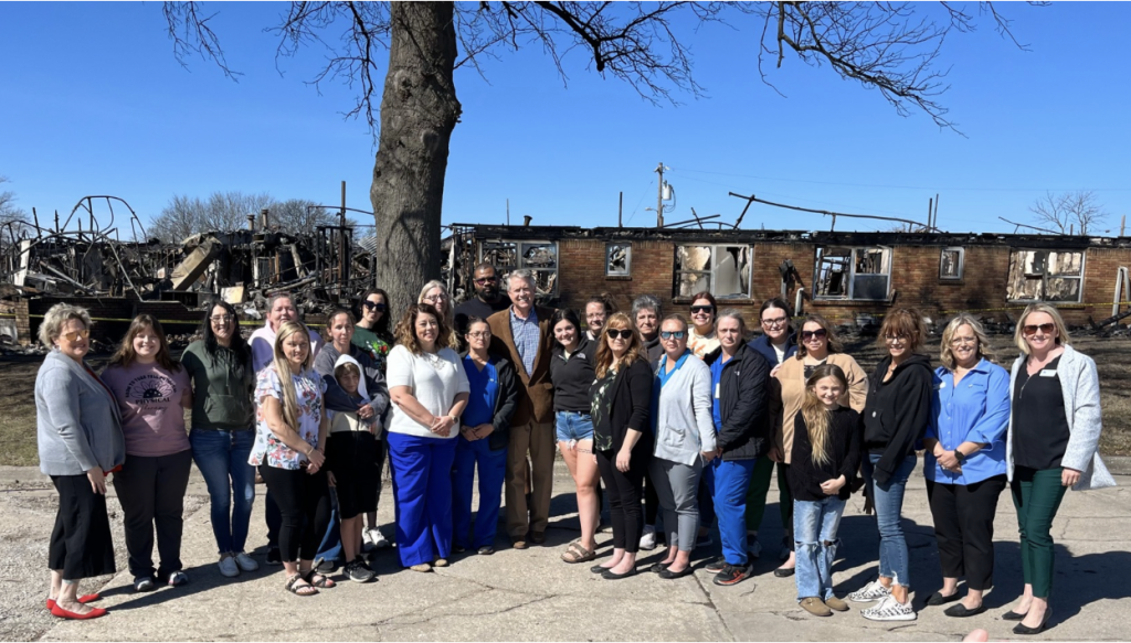 Senator Marshall, with residents and staff of Yates Center Health and Rehab Center, was destroyed by wildfire.